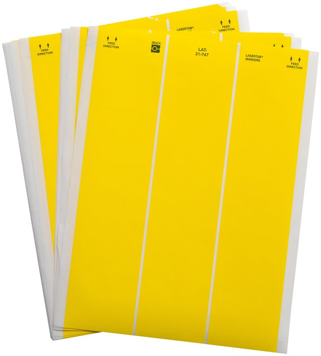 Designed for use with laser printers. Brady LASERTAB Laser Printable Labels are made of B-747 polyester.