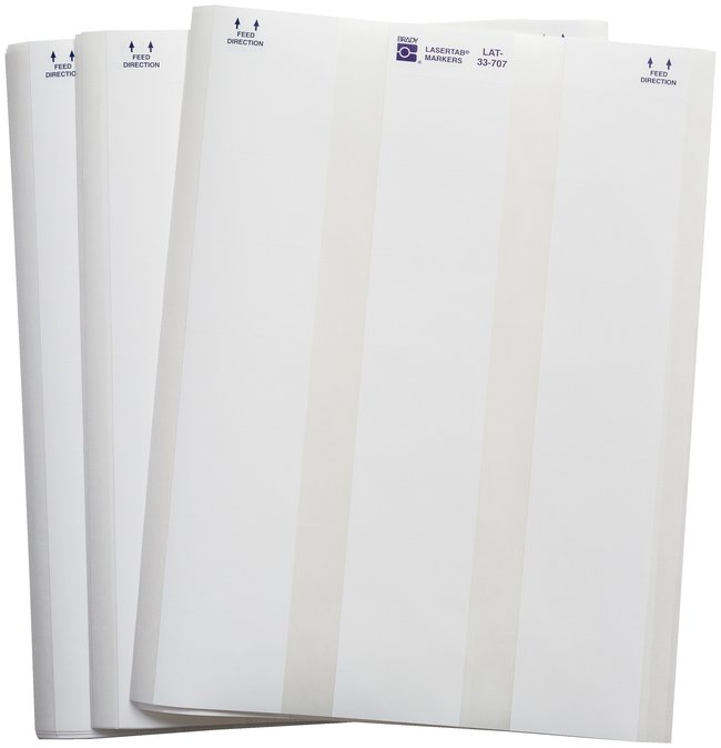 Designed for use with laser printers. Brady LASERTAB Laser Printable Labels are made of B-707 polyester.