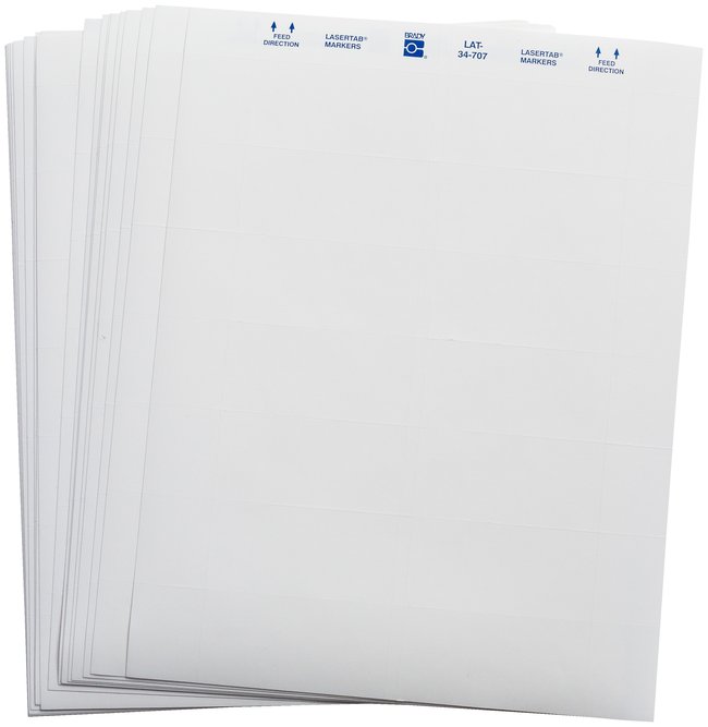 Designed for use with laser printers. Brady LASERTAB Laser Printable Labels are made of B-707 polyester.