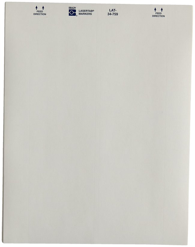 Designed for use with laser printers. Brady LASERTAB Laser Printable Labels are made of B-759 general purpose paper.