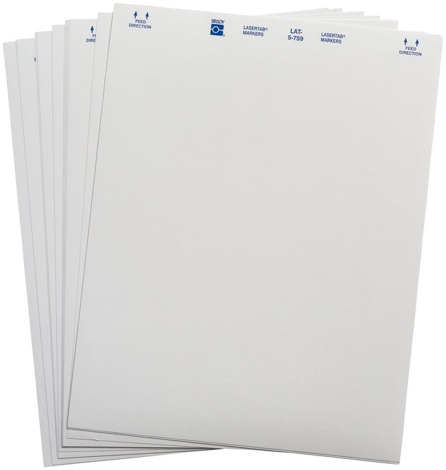 Designed for use with laser printers. Brady LASERTAB Laser Printable Labels are made of B-759 general purpose paper.