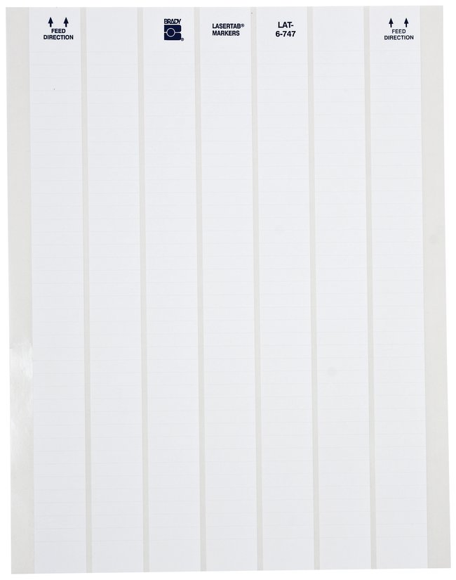 Designed for use with laser printers. Brady LASERTAB Laser Printable Labels are made of B-747 polyester.