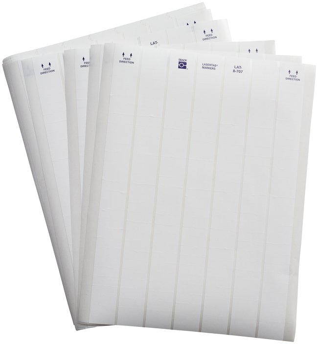 Designed for use with laser printers. Brady LASERTAB Laser Printable Labels are made of B-707 polyester.