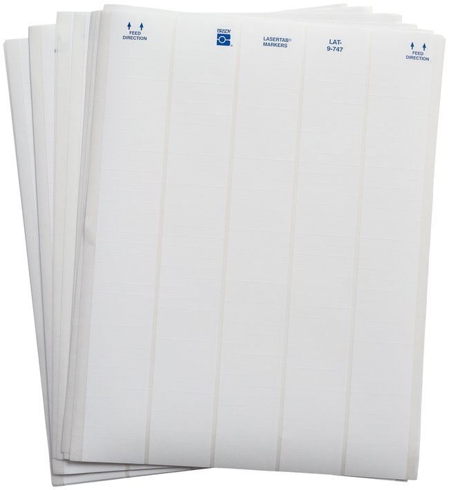 Designed for use with laser printers. Brady LASERTAB Laser Printable Labels are made of B-747 polyester.