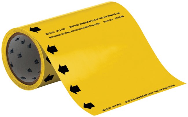 Provides clear notice to workers to identify pipe content and flow without the hassle of precise measurement around the pipe's diameter. Brady Roll Form Pipe Markers, Legend: (Blank) is made of Pressure Sensitive Vinyl.
