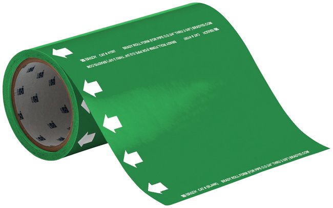 Provides clear notice to workers to identify pipe content and flow without the hassle of precise measurement around the pipe's diameter. Brady Roll Form Pipe Markers, Legend: (Blank) is made of Pressure Sensitive Vinyl.