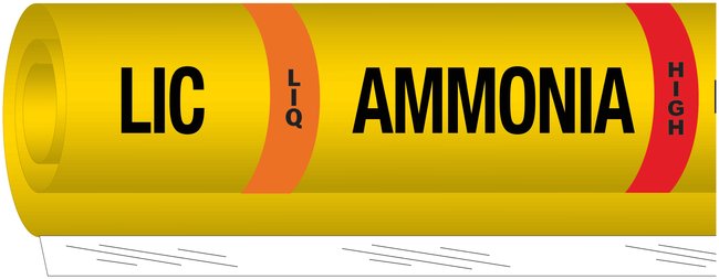 Ammonia (IIAR) Pipe Markers, Legend: HPHV/LIC/LIQ/Ammonia/HIGH, Each