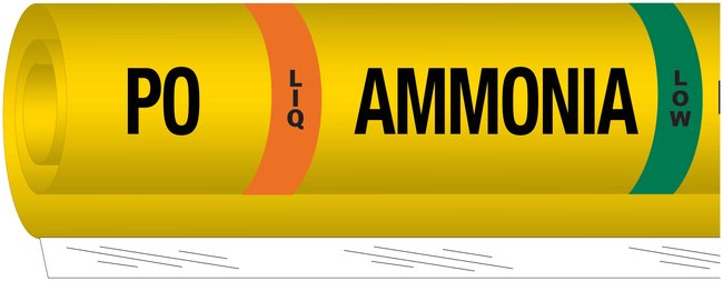 Ammonia (IIAR) Pipe Markers, Legend: PO/LIQ/Ammonia/LOW, Each