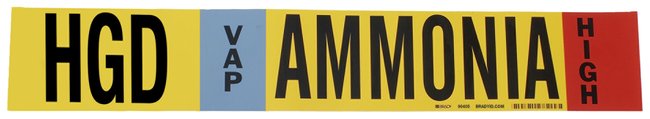Ammonia (IIAR) Pipe Markers, Legend: HGD/VAP/HIGH/Ammonia, B-946 Self-Sticking Vinyl, Each