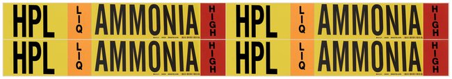 Ammonia (IIAR) Pipe Markers, Legend: HPL/LIQ/HIGH/Ammonia, B-946 Self-Sticking Vinyl, Each