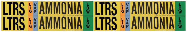 Ammonia (IIAR) Pipe Markers, Legend: LTRS/LIQ/VAP/LOW/Ammonia, B-946 Self-Sticking Vinyl, Each