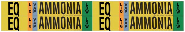 Ammonia (IIAR) Pipe Markers, Legend: EQ/LIQ/VAP/HIGH/Ammonia, B-946 Self-Sticking Vinyl, Each