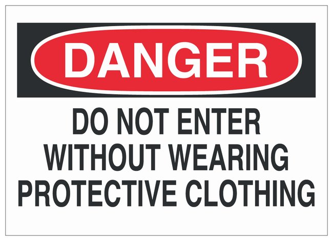 ldquo;Danger: Do Not Enter Without Wearing Protective Clothing” Signs from Brady™ are ideal for use in light duty industrial, utility, commercial and institutional environments.