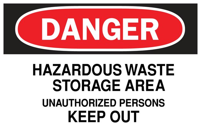 ldquo;Danger: Hazardous Waste Storage Area” signs are durable Non-Reflective Aluminum (B-555) rigid panels with protected graphics designed for use in industrial, utility, commercial and institutional environments.