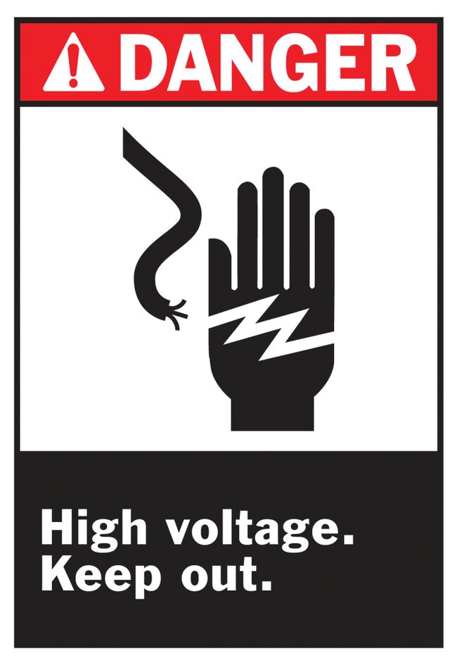 Danger High Voltage Keep Out Signs, “Danger: High Voltage—Keep Out” sign panels with protected graphics, Each
