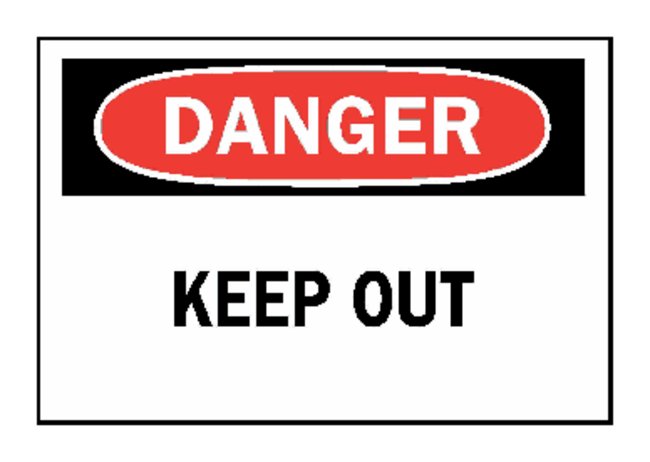 ldquo;Danger: Keep Out” Signs, Identify areas that certain, items or action are restricted, Each