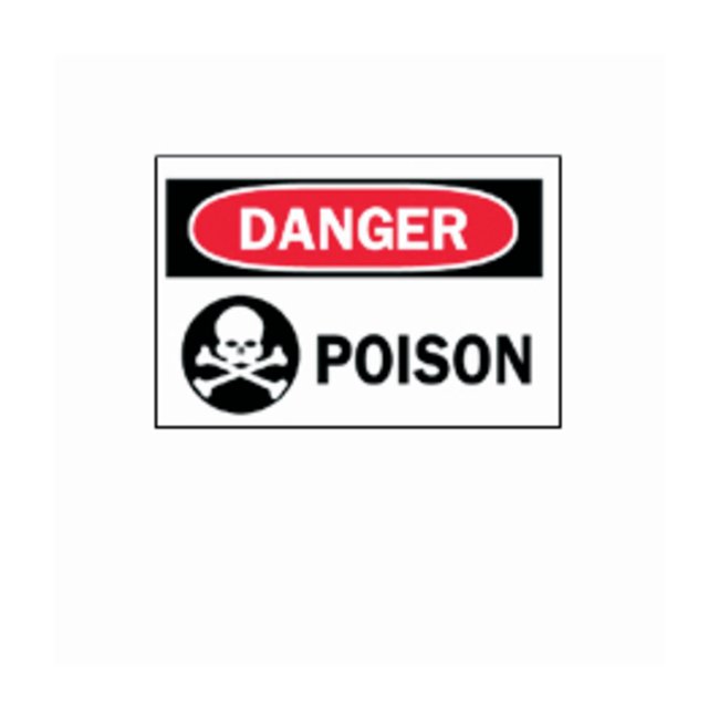 Bright colors and bold text provide high visibility to critical messagesSign reads “DANGER POISON” with pictogramBlack/red on whiteDesigned to withstand harsh industrial environmentsAvailable in different sizes and materialsB-401Plastic — high-impact polystyreneB-302Self-sticking polyester — surface printed polyester, polyester overlaminate and sensitive acrylic