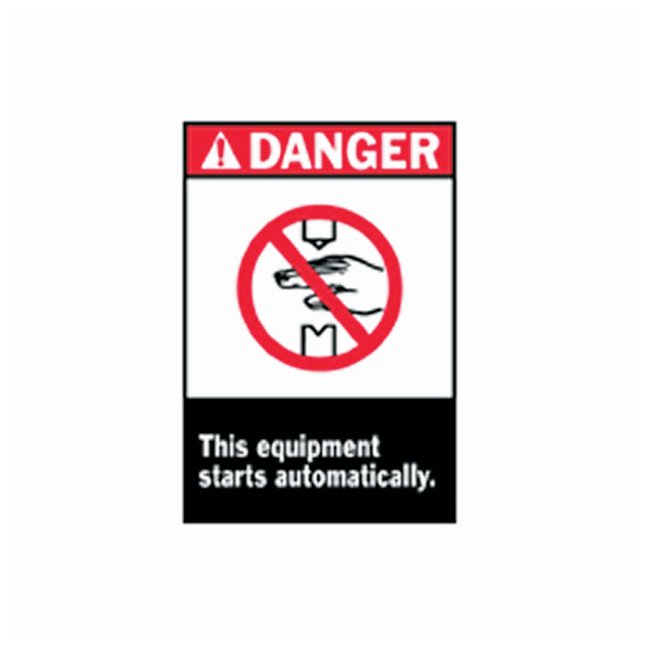 ldquo;Danger: This Equipment Starts Automatically” safety signs reinforce proper operational procedures.