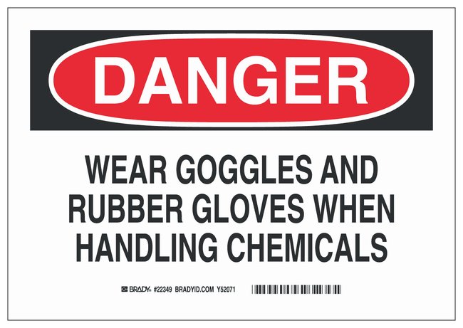 ldquo;Danger: Wear Goggles And Rubber Gloves” Signs from Brady™ are ideal for use in light duty industrial, utility, commercial and institutional environments.