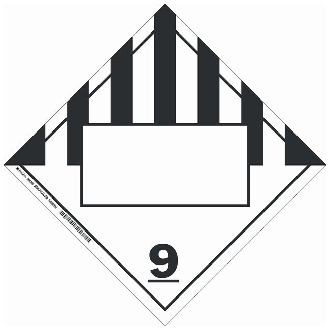 DOT Vehicle Placards: (Misc. Hazardous Materials w/Blank Box) 9, Each