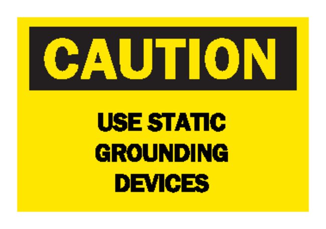 Electrical Hazard Sign: CAUTION - USE STATIC GROUNDING DEVICES, Identifies electrical hazard and high voltage areas, Each