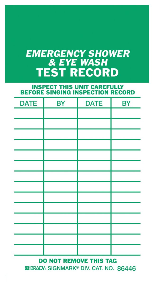Emergency Shower/Eyewash Inspection Tag and Test Record, Inform employees that equipment has been inspected and is in safe and good condition, Pack of 10