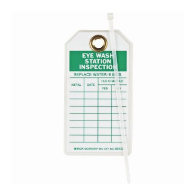 Emergency Shower/Eyewash Inspection Tag is a durable Material Control tag to inform employees of the inspection history and status of equipment or materials.