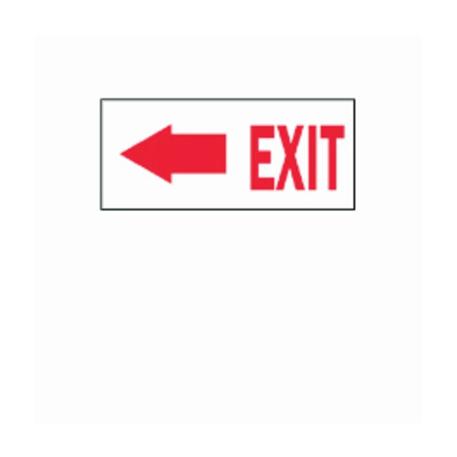 Bright colors and bold text provide high visibility to critical messagesLegend: (W/PICTO) EXIT with Left ArrowRed on WhiteAvailable in different sizes and materialsB-401Plastic — high-impact polystyreneB-302Self-sticking polyester — surface printed polyester, polyester overlaminate and sensitive acrylic