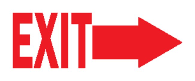 Bright colors and bold text provide high visibility to critical messagesLegend: (W/PICTO) EXIT with Right ArrowRed on WhiteAvailable in different sizes and materialsB-120Premium Fiberglass: reinforced polyester sign panel with protected graphicsB-401Plastic — high-impact polystyreneB-302Self-sticking polyester — surface printed polyester, polyester overlaminate and sensitive acrylic