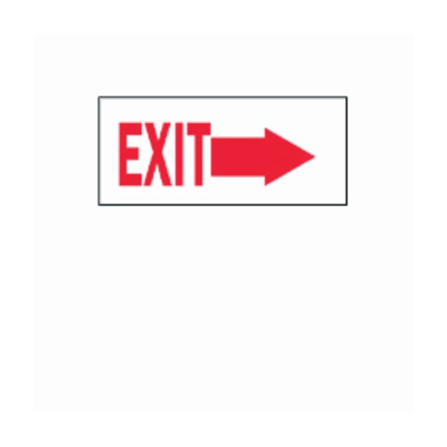 Bright colors and bold text provide high visibility to critical messagesLegend: (W/PICTO) EXIT with Right ArrowRed on WhiteAvailable in different sizes and materialsB-120Premium Fiberglass: reinforced polyester sign panel with protected graphicsB-401Plastic — high-impact polystyreneB-302Self-sticking polyester — surface printed polyester, polyester overlaminate and sensitive acrylic