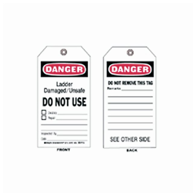 Fargo Accident Prevention Tags (B-837) are printed paper sealed in a write-on matte finish polyester pouch with a 3/8 in. grommet.