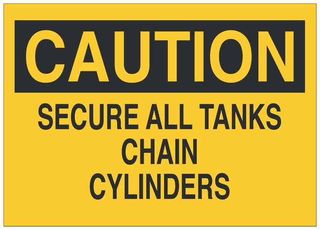 Fiberglass Caution Sign: SECURE ALL TANKS CHAIN CYLINDERS, Each