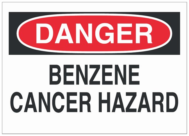 Fiberglass Danger Sign: BENZENE CANCER HAZARD, Each