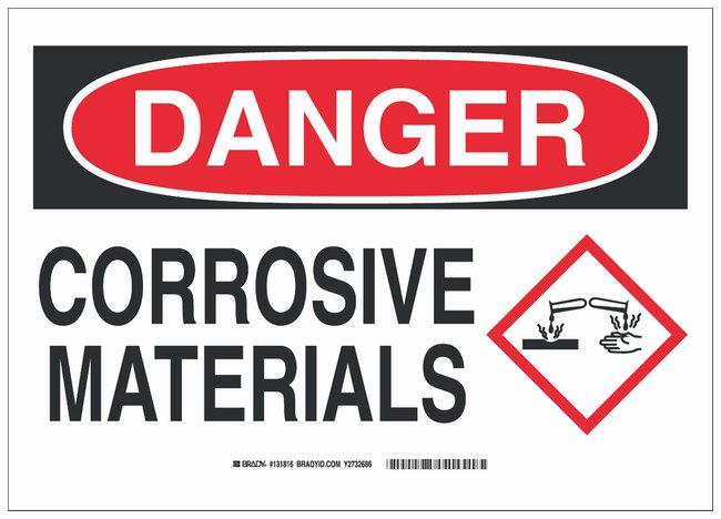 Fiberglass Danger Sign: CORROSIVE MATERIALS, Each