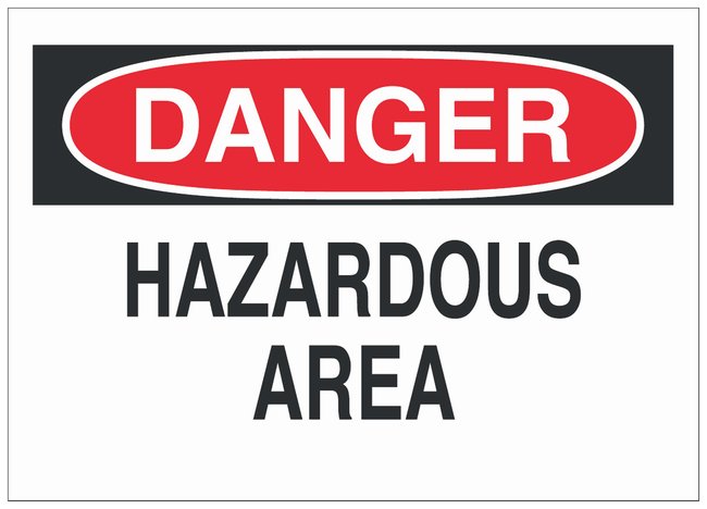 Fiberglass Danger Sign: HAZARDOUS AREA, Each