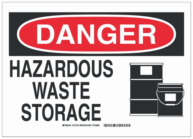 Fiberglass Danger Sign: HAZARDOUS WASTE STORAGE, Each