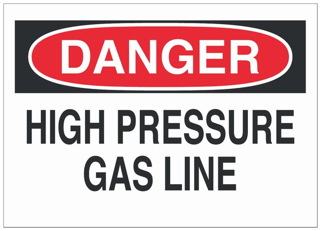 Fiberglass Danger Sign: HIGH PRESSURE GAS LINE, Each