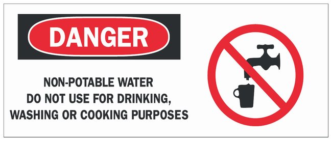 Fiberglass Danger Sign: NON-POTABLE WATER DO NOT USE FOR DRINKING, WASHING OR COOKING PURPOSES, Each