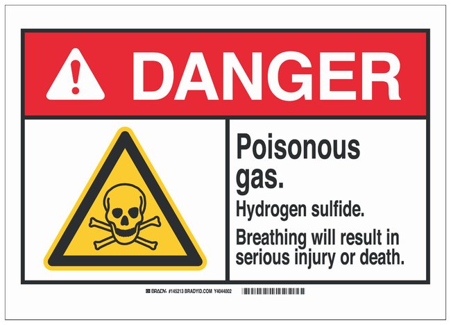Fiberglass Danger Sign: POISONOUS GAS. HYDROGEN SULFIDE. BREATHING WILL RESULT IN SERIOUS INJURY OR DEATH, Each