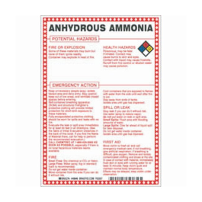 Fiberglass Hazard Sign: ANHYDROUS AMMONIA POTENTIAL HAZARDS, Each