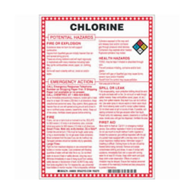 Fiberglass Hazard Sign: CHLORINE POTENTIAL HAZARDS, Each