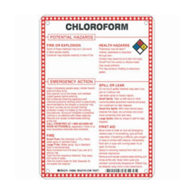Fiberglass Hazard Sign: CHLOROFORM POTENTIAL HAZARDS, Each