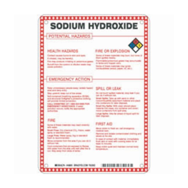 Fiberglass Hazard Sign: SODIUM HYDROXIDE POTENTIAL HAZARDS, Each