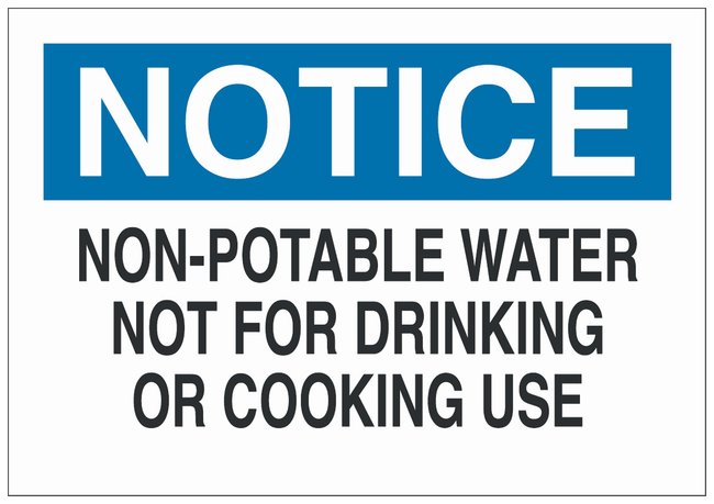 Fiberglass Notice Sign: NON-POTABLE WATER NOT FOR DRINKING OR COOKING USE, Each