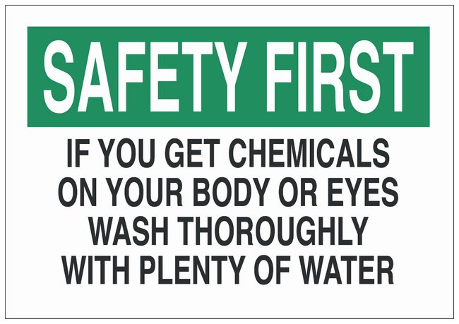 Fiberglass Safety first Sign: IF YOU GET CHEMICALS ON YOUR BODY OR EYES WASH THOROUGHLY WITH PLENTY OF WATER, Each