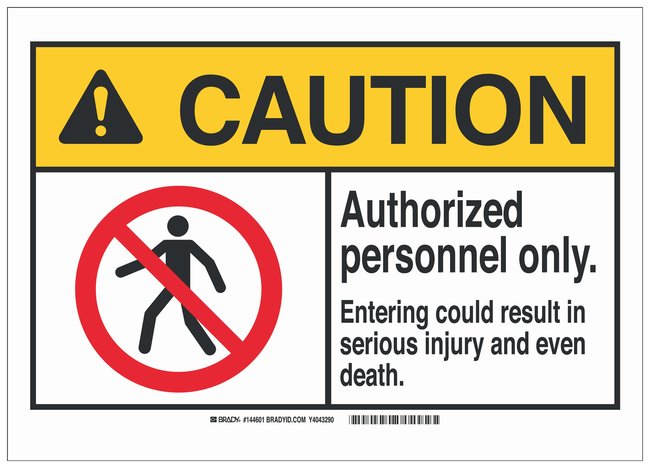 Fiberglass Security, Admittance & CCTV Sign: AUTHORIZED PERSONNEL ONLY. ENTERING COULD RESULT IN SERIOUS INJURY AND EVEN DEATH, Each