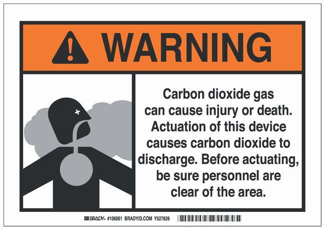 Fiberglass Warning Sign: CARBON DIOXIDE GAS CAN CAUSE INJURY OR DEATH. ACTUATION OF THIS DEVICE CAUSES CARBON DIOXIDE TO DISCHARGE. BEFORE ACTUATING – CLEAR OF THE AREA, Improve workplace safety with proper signage. The Warning Sign is a durable, clear and effective tool to properly mark appropriate areas and to help prevent workplace injury, Each
