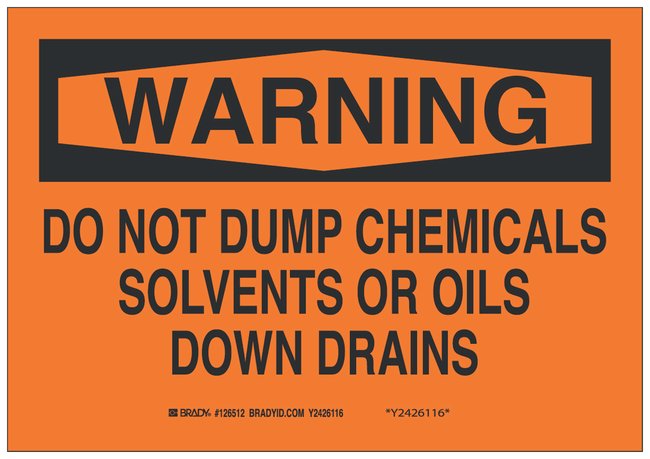 Fiberglass Warning Sign: DO NOT DUMP CHEMICALS SOLVENTS OR OILS DOWN DRAINS, Each