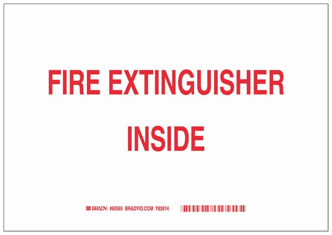Fire Extinguisher Sign: FIRE EXTINGUISHER INSIDE, Red on White, Each