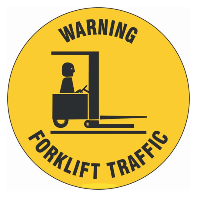 Floor Safety Sign: WARNING FORKLIFT TRAFFIC W/PICTO, Designed to warn of hazardous areas, putting valuable safety information at point of need, Each